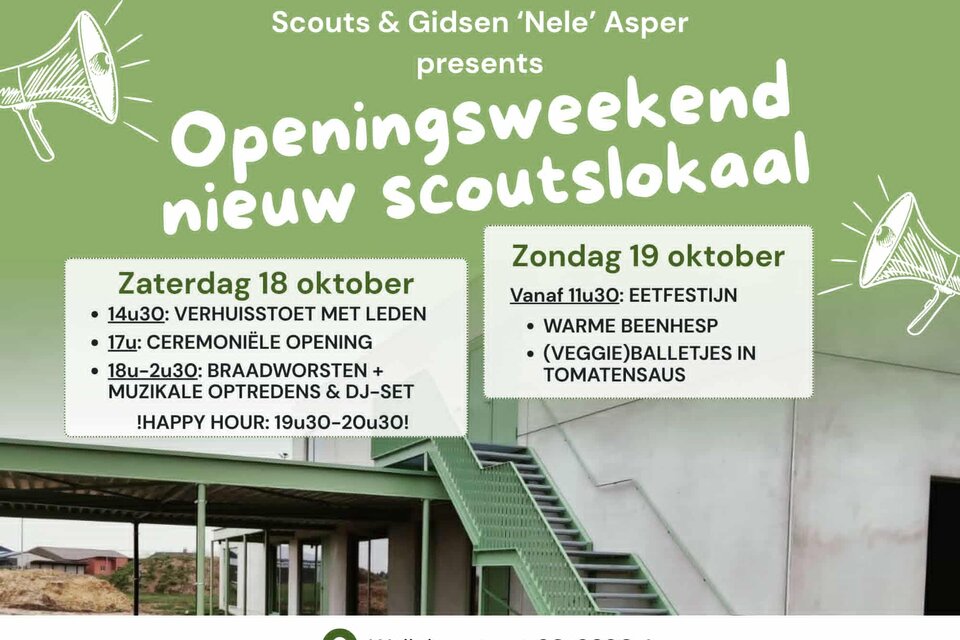 Het is eindelijk zover, de opening van onze nieuwe scoutslokalen! Omdat we dit niet zomaar willen laten voorbijgaan, organiseren wij een groot feestweekend op zaterdag 18/10 en zondag 19/10.